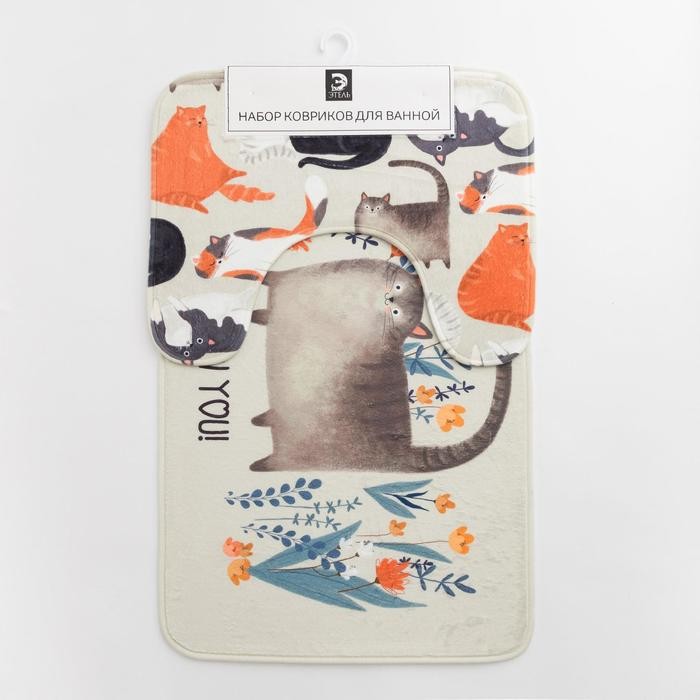 Набор ковриков для ванной Этель «Котики» 2 шт, 80×50 см, 50×40 см, велюр