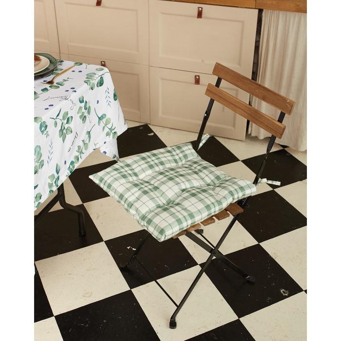 Сидушка на стул «Этель"Eucalyptus (клетка) 42х42см, 100% хл, саржа 190 г/м2